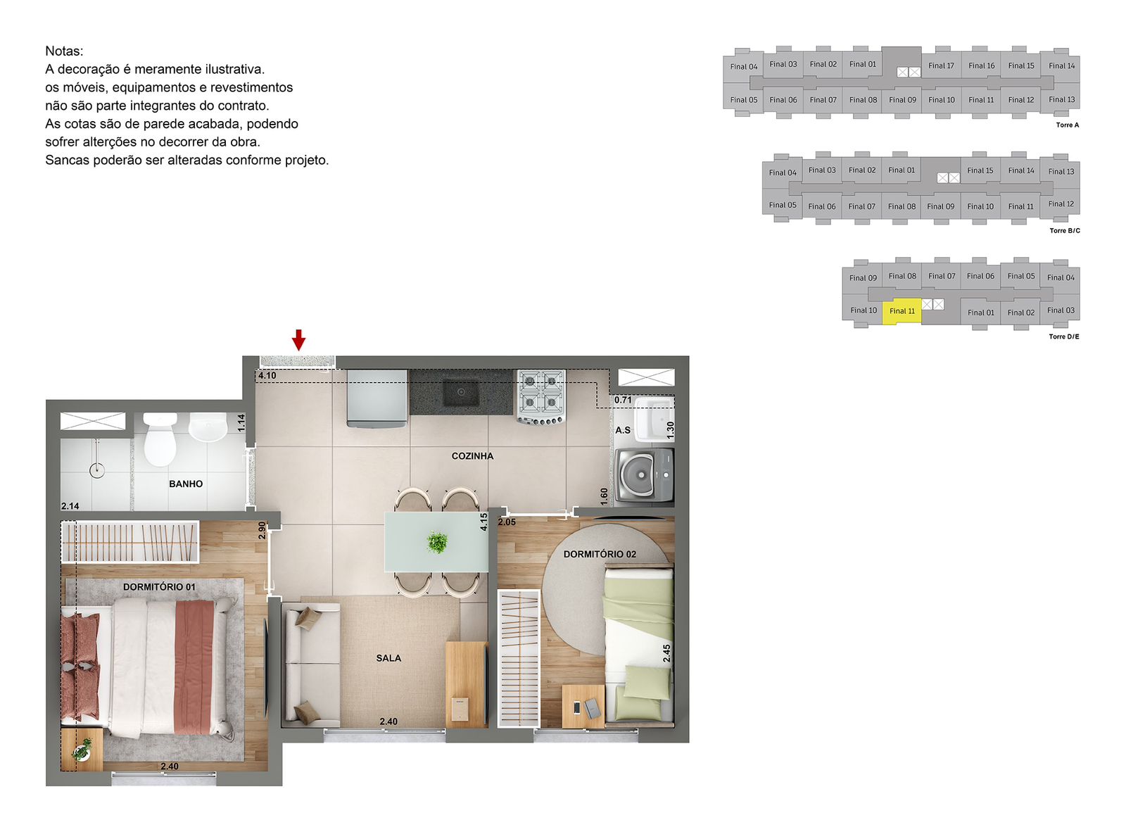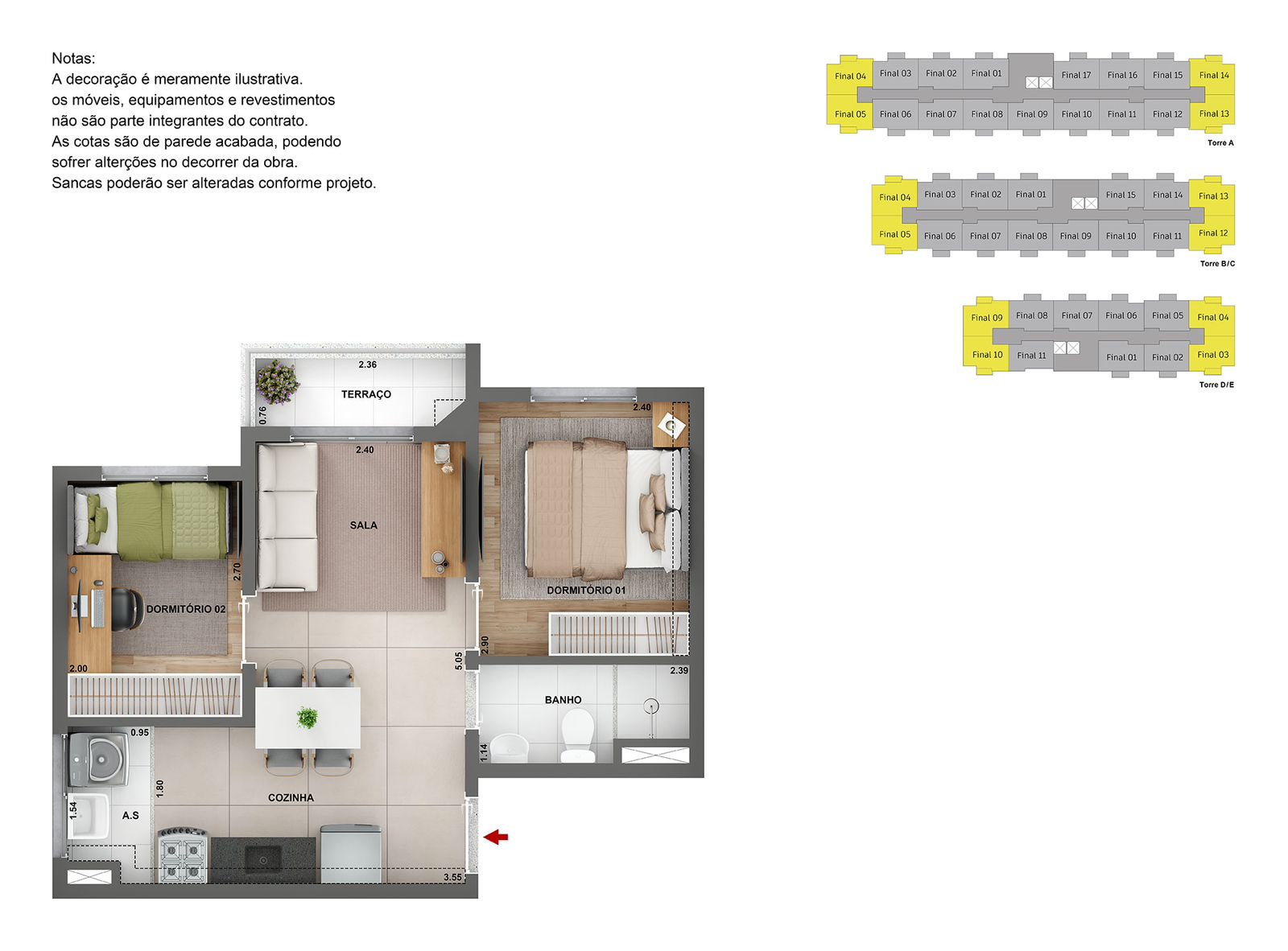 🏢 O Projeto: Apartamentos modernos de 1 e 2 dormitórios pensados para o seu conforto, em um condomínio fechado com lazer, churrasqueira, academia e segurança total.